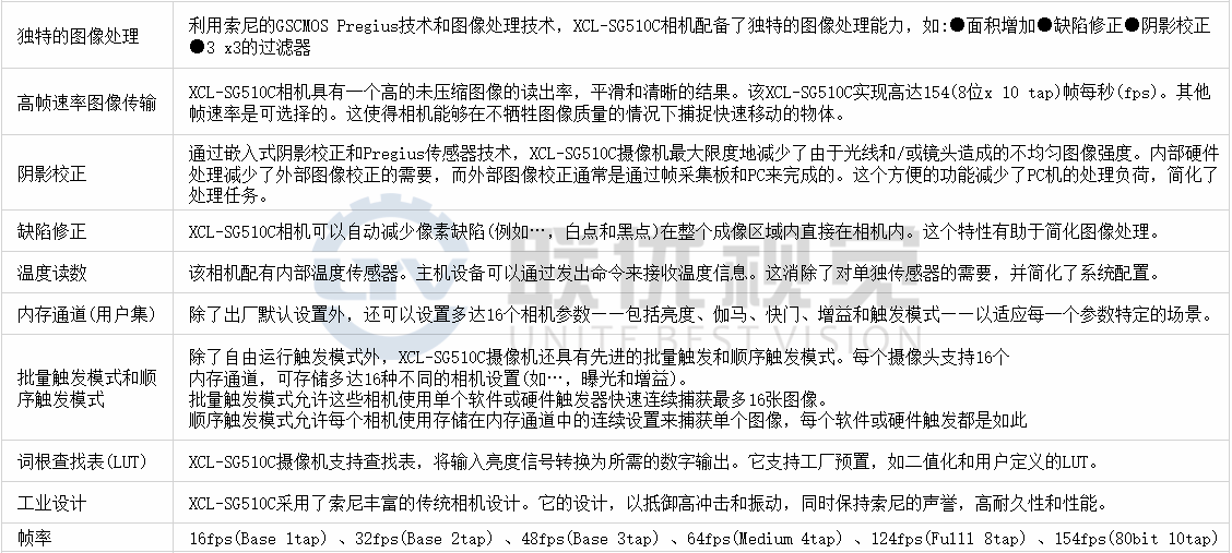 ●XCL-SG510C(彩色)是最新的工業(yè)相機,從索尼合并索尼Pregius GSCMOS傳感器技術。