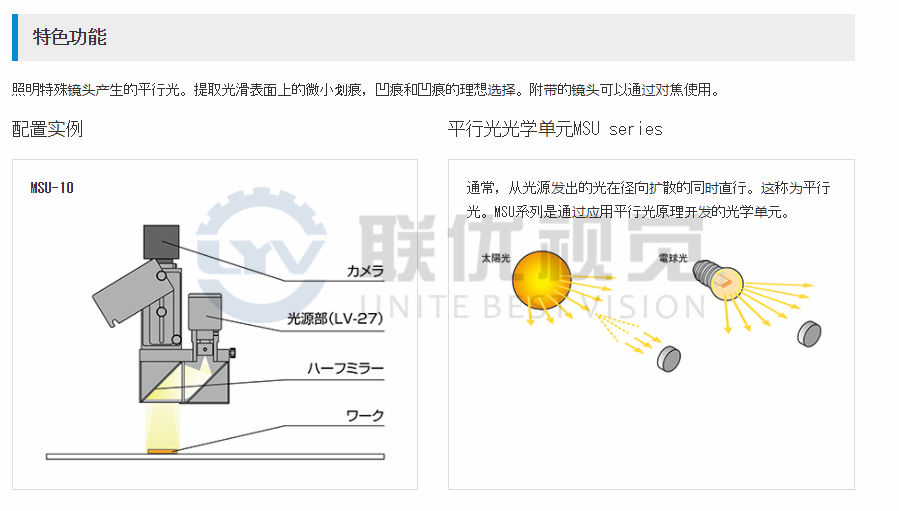 照射由特殊透鏡產(chǎn)生的平行光。有五種型號可供選擇,具體取決于視野。發(fā)射顏色可以從紅色(RD2),白色(SW),藍色(BL)和綠色(GR)中選擇。