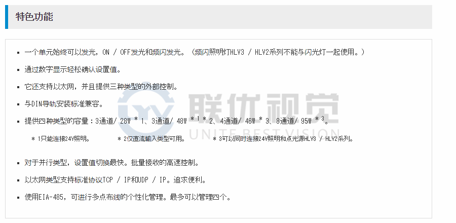 與恒定光,開/關(guān)燈和頻閃燈兼容。外部控制可以從三種類型中選擇:并行,EIA-485和以太網(wǎng)。