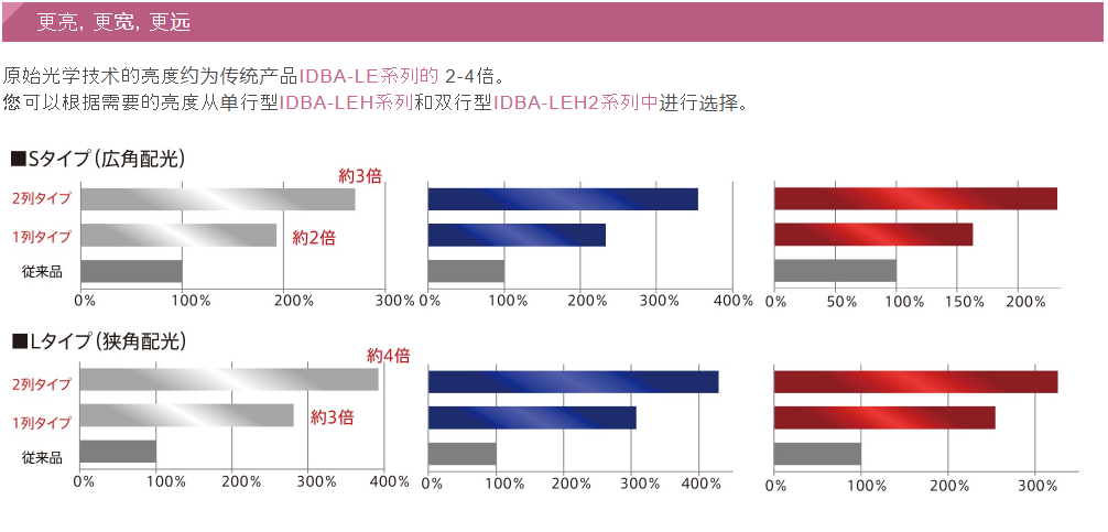 新型條形照明采用獨特的光學(xué)技術(shù),是原始IDBA-LE系列的約2至4倍。