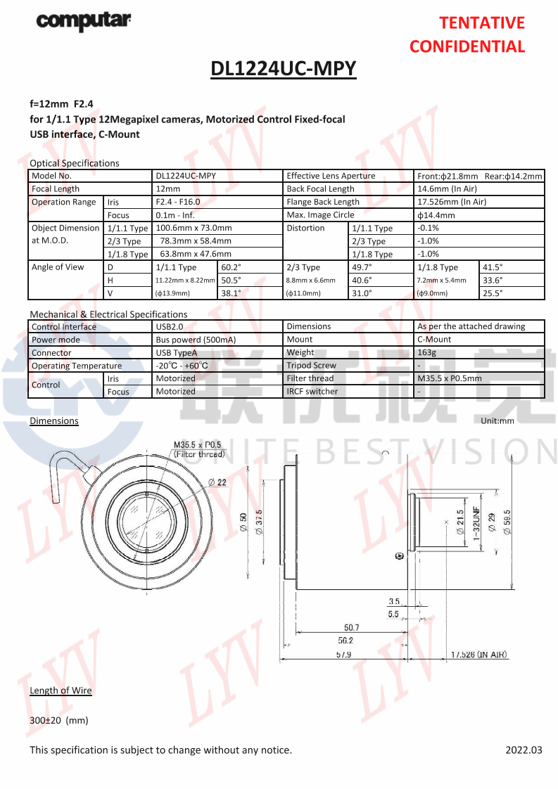 全新電動鏡頭,可通過 USB 供電和控制(適用于 I2C 版本)
